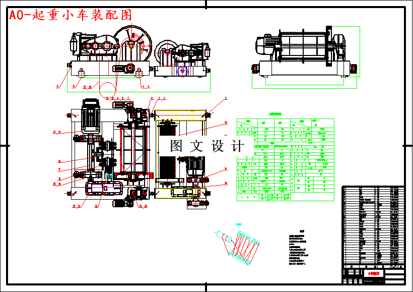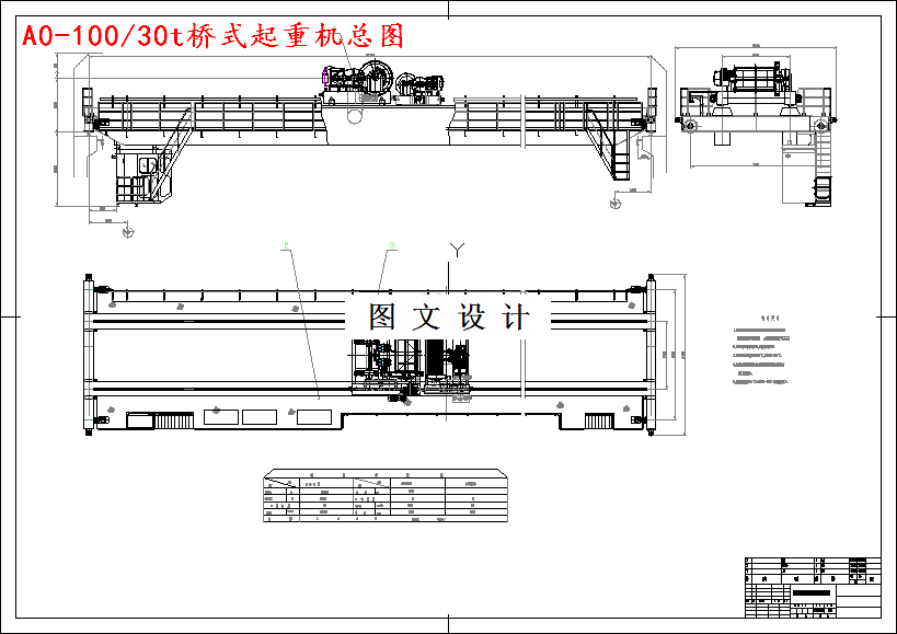 本次设计为100/30t通用电动双梁桥式起重机小车机构设计,桥式起重机又被叫做“天车”是建立在室内的一种起重机。通过桥式起重机,可以很好的减缓工人的劳累程度,有效的减少了许多繁琐困难的工作,提高了工厂的工作效率,是工厂重要的起重运输机械。本次设计的主要内容为两大机构的设计,一个是小车起升机构,另一个是小车运行机构。通过本次设计,主要完成了电动机、减速器、联轴器、制动器的选择,同时还完成了总图、主小车装配图、卷筒装配图的绘制。主要设计参数: 起重量100/30t,跨度28.5米,起升高度30/32m,起升速度7.4/12m/min,工作级别M5/M5。 小车机构设计参数: 小车运行速度38.8m/min,大车运行速度77m/min,轨距2700mm,参考轮距2600mm, 小车参考自重:约40t,工作级别M6。