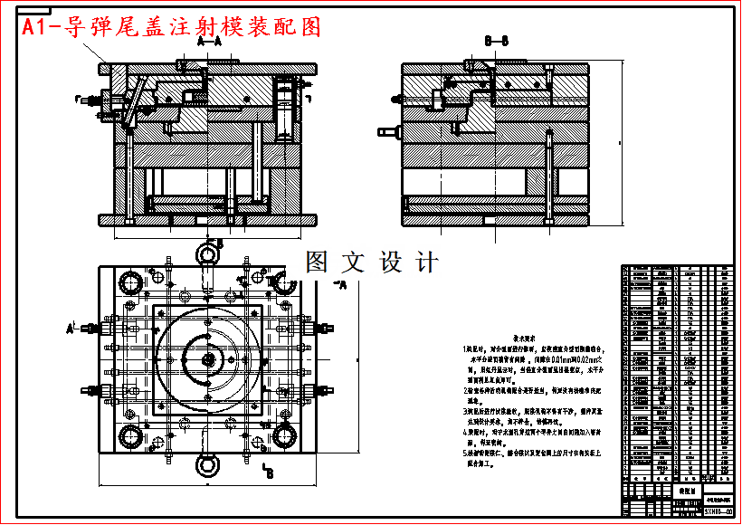 本设计是对产品导弹尾盖的模具的设计,通过对于导弹尾盖的AutoCAD图纸进行分析可知:该塑件几何尺寸较大,且壁厚薄厚不一,使得该塑件成型及冷却较难;塑件形状较为复杂,侧壁有不规则突起,中间有半封闭腔,使得脱模较难。因此,在设计时要着重对于这一难点进行仔细研究分析:对于塑件成型困难的问题,选用加工精度较高的模具钢,以确保塑件顺利成型;对于塑件冷却问题,采用常温水冷冷却水道,在较厚处重点冷却,使其冷却快速均匀;对于塑件脱模问题,采用活动型芯拼接的方案,对于塑件侧壁有突起通过设计侧向抽芯机构进行解决。
