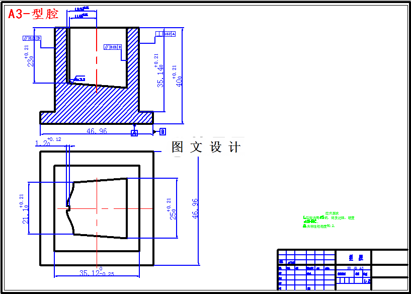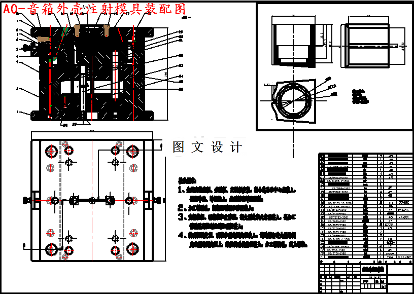 材料:ABS小批量生产侧浇口一模两腔侧抽芯定位圈尺寸:注射模安装用定位圈外径应与注塑机定位孔内径呈间隙配合,定位圈高度应小于定位孔深度。 所以根据所选注射机的参数,定位圈直径: 160mm。模具外形尺寸:模具长度尺寸应与注塑机的拉杆内间距相适应,应小于600×600,以保证模具至少能从一个方向穿过拉杆间的空间安装在注塑机上。此套模具属于小型模具,工件上有侧抽芯结构,注射成型的气体可以通过先抽芯的孔进行排气,所以不必考虑单独开设排气槽等排气系统。