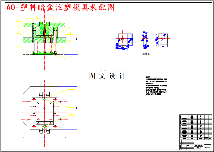 本设计系统阐述了塑料暗盒注射模设计过程,根据塑料暗盒注射模的形状和生产要求,编制塑料暗盒模具的设计过程,初步制定了总体模具的设计方案。首先对塑料暗盒模具进行了详细的工艺性分析,然后进行注射模结构设计,接着对整个模具的进行相关校核,最后完成整个塑料暗盒模具设计,并绘制出模具的总装图和非标准件的零件图。本设计方案结构紧凑,满足制品大批量生产、高精度、外形复杂的要求,设计参考了以往注射模具的设计经验,并结合制件性能,简化设计机构,并且运用AutoCAD等软件进行绘图,缩短了生产周期,并且获得良好的经济性能。
