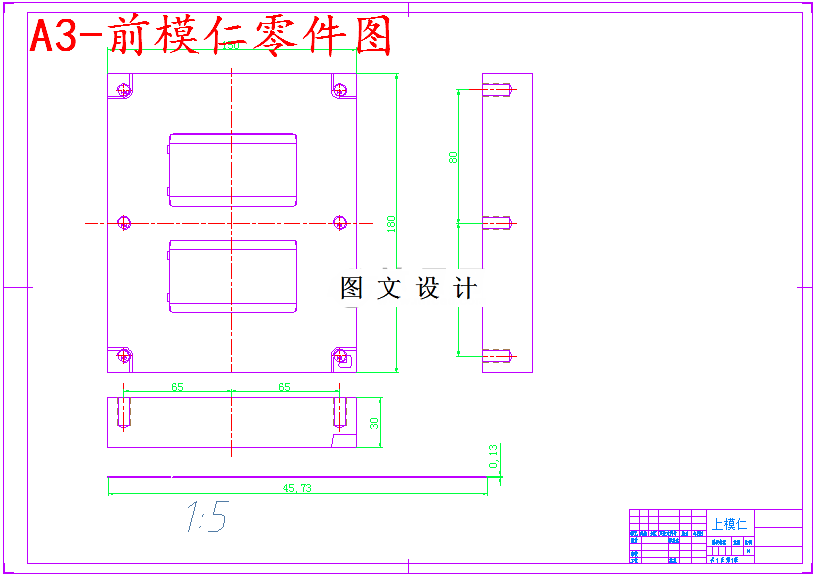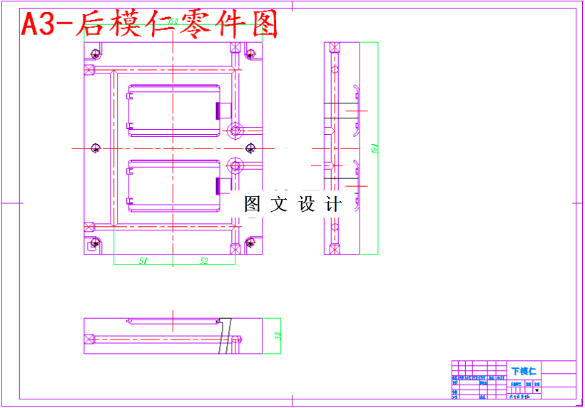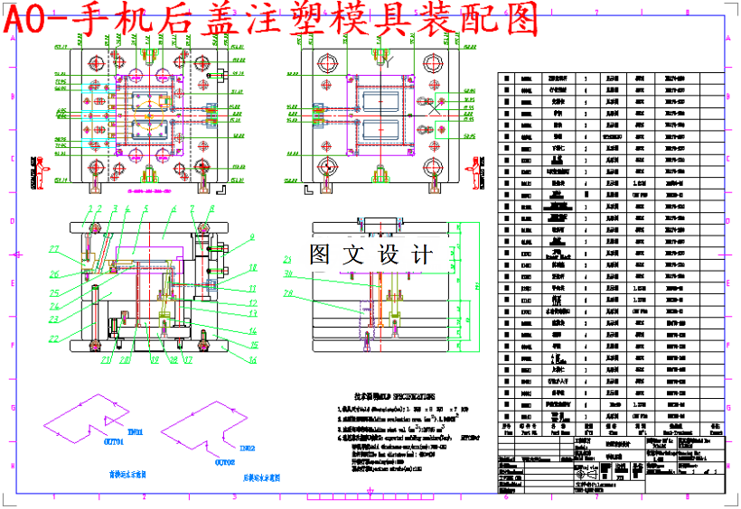 塑件为手机后盖,在使用上表面质量要求比较高,要求表面没有缺陷、毛刺,还要光滑,相对还是比较容易实现。采用单分型面注射模 型腔在定模板上;主流道设在前模中心上,分流道设在分型面上,运用潜伏进胶,分模后塑件连同流道内的凝料一起留在动模一侧;动模设有顶出机构,用以顶出塑件和流道内的凝料。