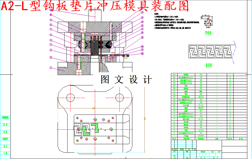 冲压所使用的模具称为冲压模具,简称冲模。冲模是将材料(金属或非金属)批量加工成所需冲件的专用工具。冲模在冲压中至关重要,没有符合要求的冲模,批量冲压生产就难以进行;没有先进的冲模,先进的冲压工艺就无法实现。冲压工艺与模具、冲压设备和冲压材料构成冲压加工的三要素,只有它们相互结合才能得出冲压件。该零件材料为H62(黄铜)结构简单,冲孔时有尺寸为Φ1.6 根据知冲孔时,因受凸模强度的限制,孔的尺寸不应太小.冲孔的最小尺寸取决于材料性能,凸模的强度和模具结构等。级进模是一种多工位、效率高的一种加工方法,也只需要一副模具,工件的精度及生产效率都能满足生产要求。但级进模轮廓尺寸较大,制造复杂,成本较高,一般适用于大批量,小型冲压件。因本工件尺寸轮廓较小,采用此方案,模具的强度和刚度比复合模高,操作也比复合模安全。