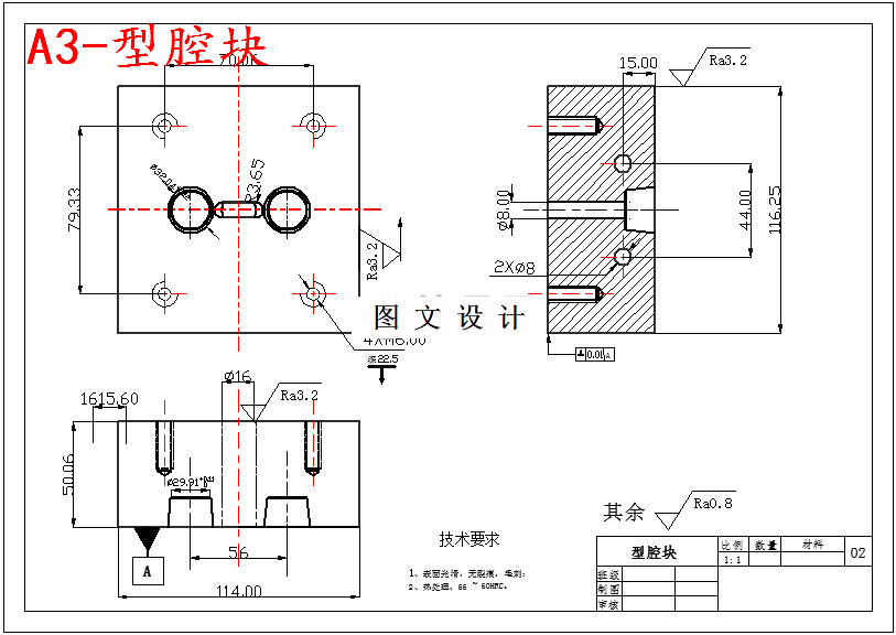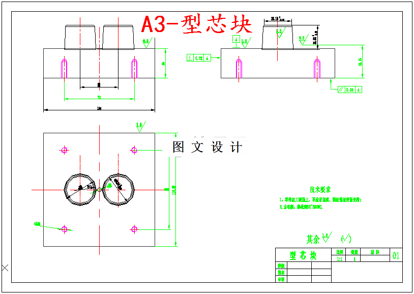 该塑件采用ABS材料成型,是一种常用的热固性塑料。ABS具有较高的强度、硬度、耐热性及耐化学稳定性;还有较强的冲击强度与弹性;优良的介电性能和成型加工性能。塑件尺寸精度:该塑件体积较小,外形简单。该塑件均未标注公差,属于自由尺寸。精度为MT5级塑件精度,查《互换性与测量技术》公差表3-2.精度要求不高,采用注射成型精度能给予保证。塑件表面质量:该塑件要求不能有飞边、毛刺、缩孔、气泡等划伤外形缺陷。