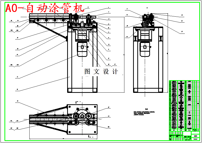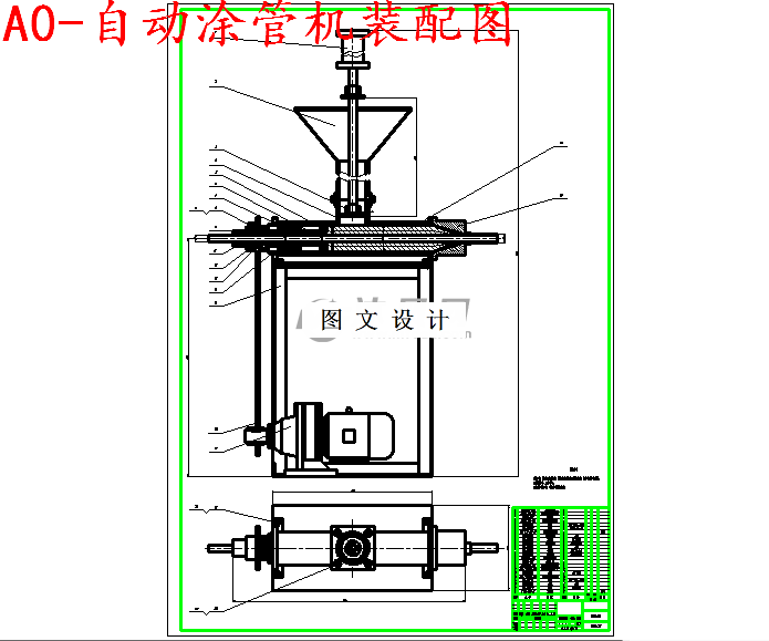 本设计是为了解决工厂当中的实际问题,设计一种能够给管材外表面涂抹流动性较差物料的自动机械加工设备。实际生产当中给管材外表面涂料是一种非常普遍的现象,市场上也确实存在一些涂管设备,但由于本设计所要针对的物料特殊,具有流动性差的性质,市场上的大多数涂管机均难以适应此物料,故需要另行设计。整个设计的主要设计思想是以挤出机的挤出成型原理为依据,在挤出机的基础上加以改进设计出加工机构,再设计出与之相配合的自动喂料机构,两者相互组合构成整个自动涂管机。