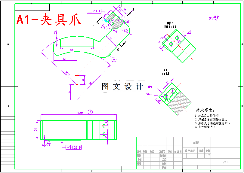 本机的设计包含激光安装机架,刀体上料机架,基体上料机架、焊接后下料机架、焊接夹具机架五部分。每部分都有着独立的设计方案,根据现实生产中的工艺要求进行设计,遵守简单适用,安全可靠的生产理念。设计方案的过程中每一步的选择都是在查阅许多的资料,总结之后做出的,零件的每个结构和尺寸都经过计算并校核,各种通用件、标准件的选择也都是通过计算选取的,确保在完成设计任务的同时达到安全可靠。