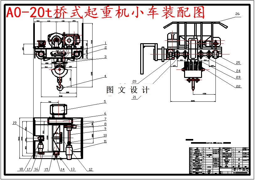 本设计主要对桥式起重机的整体结构做了介绍和分析进而对桥式起重机进行设计,。主要包括桥式起重机小车运行机构的整体设计及传起重机的主要部分是小车的运行机构和起升机构我们要对其重点设计,对运行机构的布置、起升机构的设计计算。还要对卷筒和吊钩的设计计算,以及对滑轮、联轴器的选取、电动机的选取、减速器的设计和检验。