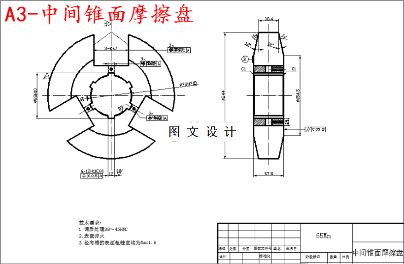 本设计的题目反馈控制轴向摩擦偶合器,是一个全新的课题,在国内外算得上是一种比较先进的产品,本设计是在无反馈轴向摩擦偶合器的基础上,为了获得更好的软启动效果而设计的一种新产品。同时,它具有与传统的硬启动相同的承载能力。因此本方案具有很好的发展前景。本文的主要任务是整体结构的合理设计,包括摩擦元件的设计计算,各个传动部件的设计等。另外选择摩擦性能较好的摩擦材料对本次设计来说显得尤为重要,是关系到成败的关键因素。还要对各个传动和链接元件进行强度校核。从而使得该方案具有较好的可行性和实用性。为了便于实现反馈控制,本方案采用主动级相对于反馈级对称布置的结构,主动级在两侧,中间是反馈级。在启动时采用离心式压紧,在径向均匀布置的带有锥面的离心块(与锥面摩擦盘配合)在主、从动机达到一定转速时将主动级和反馈级离心块甩出,产生径向位移的离心块同时在锥面间产生轴向位移,这样就将主动级机摩擦片和从动机摩擦片挤紧,主、从动机结合并传动。离心块采用圆柱螺旋压缩弹簧复位。个摩擦片和摩擦盘上带有花键槽。从动轴为花键轴,固定反馈级离心块的锥面圆盘可以在花键轴上滑动,使得其两侧的摩擦片分担相等的负载,杜绝了两边承载不均匀的现象。