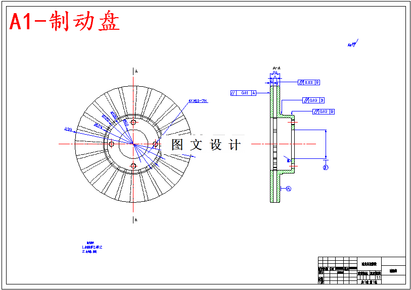 采用盘式制动器。要求对制动力、制动力分配系数、制动器因数等进行计算。对制动器主要零件,如制动鼓、制动蹄、摩擦衬片(衬块)进行结构设计和设计计算。制动盘一般由珠光体灰铸铁制成,或用添加Cr,Ni等的合金铸铁制成。其结构形式有平板形(用于全盘制动器)和礼帽形(见右图,用于浮动钳盘式制动器)。后—种的圆柱部长度取决于布置尺寸。制动盘在工作时不仅承受着制动块的作用的法向力和切向力,而且承受着热负荷。制动盘厚h对制动盘质量和工作时的温升有影响。为使质量小,制动盘的厚度不宜取得很打;为了降低温度,制动盘的厚度又不宜取得过小。制动盘可以做成实心的,或者为了散热通风的需要在制动盘中间铸出通风孔。一般实心制动盘厚度可取为10—20mm,通风制动盘厚度可取20—50mm,采用较多的是20mm—30mm.选取前实心制动盘厚度为h=16mm:后实心制动盘厚度为h=12mm。643112