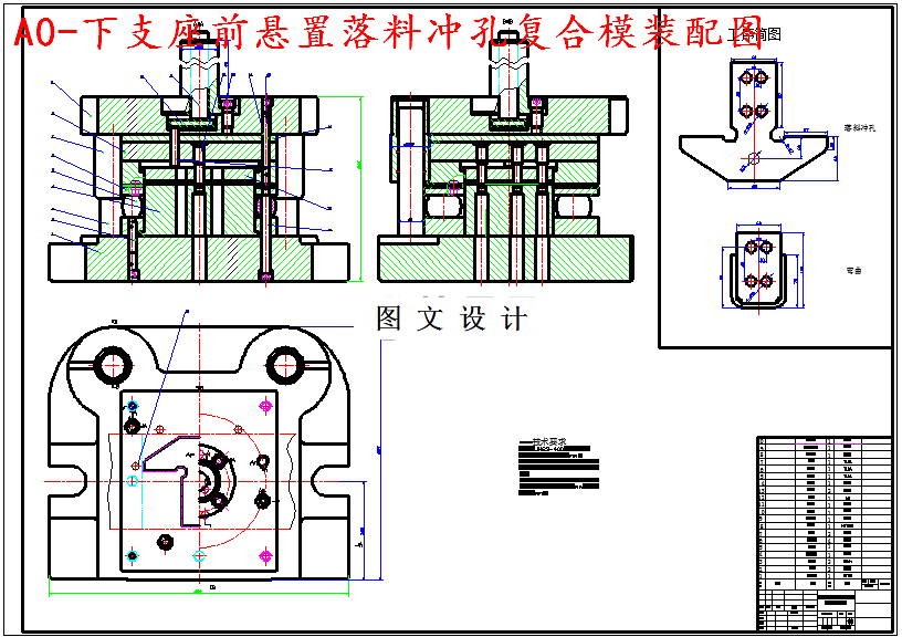 零件为一落料冲孔弯曲件,可提出的加工方案如下: 方案一:先落料,再冲孔,最后弯曲。采用两套单工序模和一套弯曲模生产。 方案二:先落料—冲孔复合冲压,最后弯曲。采用一套复合模和一套弯曲模生产。 方案三:先冲孔—落料连续冲压,最后使用弯曲。采用一套级进模和一套弯曲模生产。 方案四:先落料,再弯曲,最后使用冲孔。采用一套落料模、一套弯曲模和一套弯曲模. 方案一模具结构简单,但冲裁时需两道工序、两副模具,生产效率低,零件精度较差,在生产批量较大的情况下不适用。方案二冲裁时只需一副模具,冲压件的形位精度和尺寸精度易保证,且生产效率高。尽管冲裁模具结构较方案一复杂,但由于零件的几何形状较简单,模具制造并不困难。方案三冲裁时也只需一副模具,生产效率也很高,但与方案二比生产的零件精度稍差。欲保证冲压件的形位精度,需在模具上设置导正销导正,模具制造、装配较复合模略复杂。方案四,由于孔的位置及大小不影响以后的弯曲,与方案一一样生产效率低,零件精度较差,不适于大批量生产。所以,比较四个方案欲采用方案二生产。现对复合模中凸凹模壁厚进行校核,当材料厚度为6mm时,可查得凸凹模内孔不积存废料最小壁厚为6mm,现零件上的最小间距为7mm,所以可以采用复合模生产,即采用方案二。仅供参考。