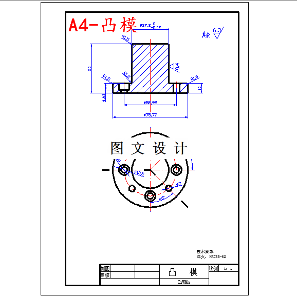 此零件为圆筒形件,属于无凸缘圆筒形拉深件,总高为14.5 mm,壁厚为0.3mm,最大直径为37.9mm,底部中心有直径为8.5mm的不规则孔,还有局部成形特征。根据对零件图的分析,其冲压基本工序可初步定为:落料—拉深—冲孔—整形。根据生产经验,集中到一副模具上的工序数量不宜太多,对于复合模,一般为2-3个工序,最多4个工序,对于级进模,集中的工序可多些。