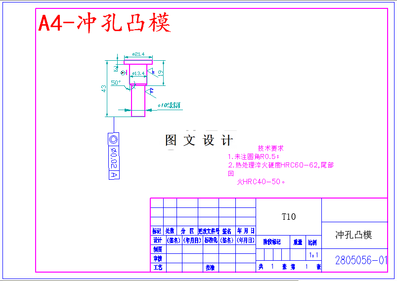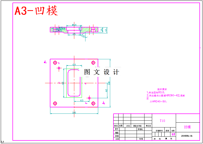 零件厚度0.3mm,外形较复杂,内有圆孔。需冲孔、落料两道基本工序。尺寸精度定为IT13级,零件图上的尺寸,除了总长度尺寸、孔的定位尺寸和孔的直径尺寸标有偏差外,其余尺寸均未标注公差,属自由尺寸。可按IT13级确定工件的公差。由于该零件为批量生产,故适合用的模具类型有复合模、多工位自动级进模或自动模。根据方案分析比较的情况,本设计选用连续模。模架选用后侧导柱模架,导柱安装在后侧,左右送料,操作比较方便。