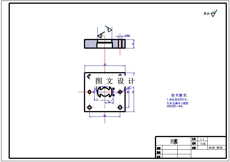 该异形垫片采用Q235冷轧钢板,板厚1mm。大批量生产。该制件仅有冲孔.落料两个工序特征,形状简单,没有极限冲裁特征,成形容易,适合冲裁。部分尺寸公差已经给出。零件图上形状尺寸均属于IT13级精度,冲压加工可以实现。经分析比较,本设计中采用下料、落料、冲孔三个工序。本设计只设计单工序的落料模。