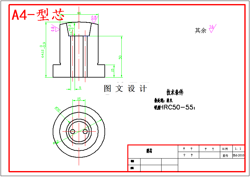 形状:该制件为塑料盖,外形尺寸直径为Φ59mm,壁厚为3mm,高为12mm,形状为圆形壳体。由于聚酰胺为结晶性塑料,流动性好,成型收缩率较大,所以采用注射成型。考虑到塑件的尺寸较小,在此采用一模两腔。