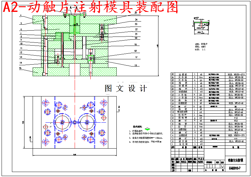 该塑件是动触片,塑件壁厚2mm属薄壁塑件,生产批量大,材料ABS。由于共聚物为无定形塑料,黏度适宜,流动性较好,热稳定性亦较好,所以采用注射成型是非常合理的。根据分型面的选择原则,分型面应尽可能便于塑件唾沫和简化模具结构,尽可能的让塑件留在动模一侧,以及根据塑件的结构特征,分型面选择在塑件的外表面。根据塑件的材料性能,可以选择注射成型方式,根据塑件的外轮廓及内轮廓为复杂曲线,为简化模具型芯和型腔的加工制造难度,且加工效率较高,采用一模两腔注射成型。