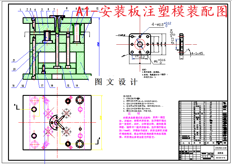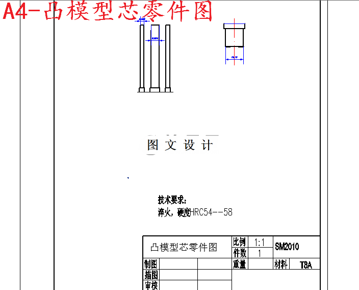 塑件形状:该制件为安装板,为边长26mm的方体,壁厚为4mm,底部有四个直径为2.5的小孔,四个直径为2.8的孔,形状为长方体。为了不影响塑件的外观,故采用矩形侧浇口,采用单分型面,基于分型面的选择原则,分型面可以选择在安装板的底面。考虑到塑件的尺寸,在此采用一模四腔。
