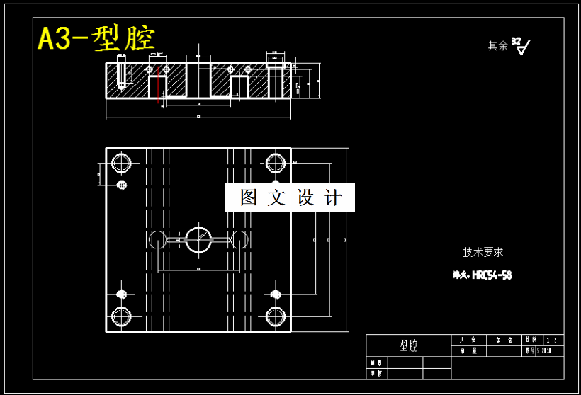 该塑件是一药盒底盖,生产批量大,材料为ABS,属通用性热塑性塑料,其成型性能较好,流动性好,成形收缩率较小(通常为0.3-0.8%),比热容较底,在料筒中塑化效率高,在模具中凝固较快,成形周期短,但吸水性较大,成形前必须充分干燥,可在螺杆式卧式注射机上成形。依据对塑件结构的分析,采用矩形直浇口浇注,因此采用单型面。ABS塑性较好,采用倒锥形冷料穴,开模时靠倒锥起拉料作用,然后由推杆强制推出,易于实现自动化操作。由于考虑到塑件的外观尺寸和塑件的形状,且是一模两腔。