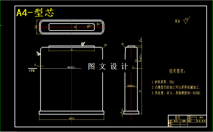 塑件形状:该制件为座盖,最大外形尺寸为112mm,壁厚为2mm,宽为24mm,高为30mm。塑件采用注射成型法生产。为了简化模具,使用侧浇口形式,模具为单分型面注射模。选择成型设备XS—ZY一125型卧式注射机。为了不影响塑件的外观,故采用矩形侧浇口,采用单分型面,基于分型面的选择原则,分型面可以选择在座盖的底面。考虑到塑件的尺寸,在此采用一模两腔。由于考虑到塑件的外观尺寸和塑件的形状,且是一模两腔,则选用矩形侧浇口,宽度4.5mm,厚度1.5mm,长度2mm。