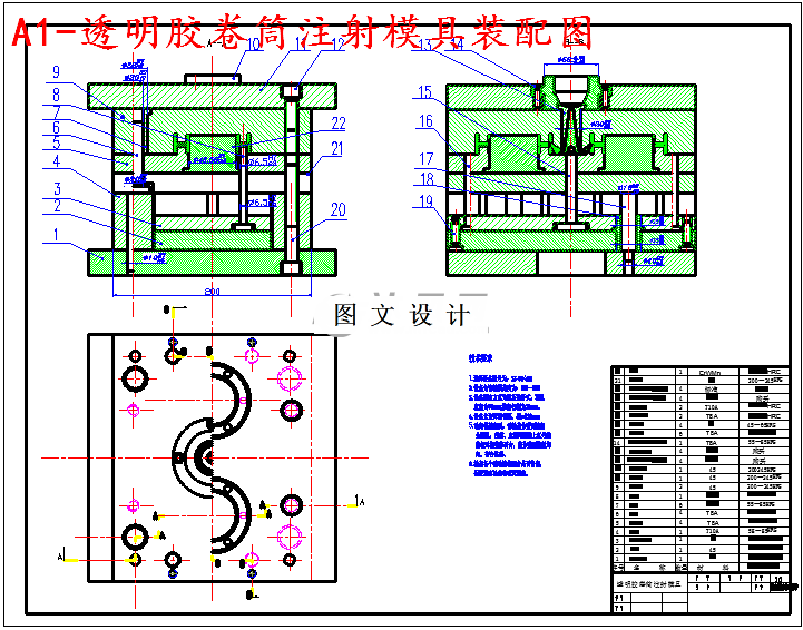 该塑件是一透透明胶卷筒,塑件壁厚属薄壁塑件,生产批量大,材料为聚苯乙烯。依据对塑件结构的分析,采用潜伏式浇口浇注,因此采用一次分型,采用两板式模具结构。由分型面的选择原则,分型面选在胶筒的一个端面。初定一模两腔。