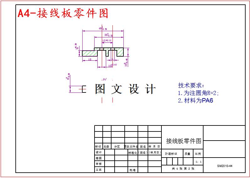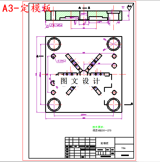 塑件壁厚属厚壁塑件,生产批量大,材料为PA6。依据对塑件结构的分析,采用了矩形侧浇口,因此采用单分型面。由前面型腔的布局以及相互的位置尺寸,再根据成型零件尺寸确定模架的尺寸,所以选用标准模架,根据GB/T12556.1~12556.2-1990《塑料注射模中小型模架》,B×L=200mm×200mm。
