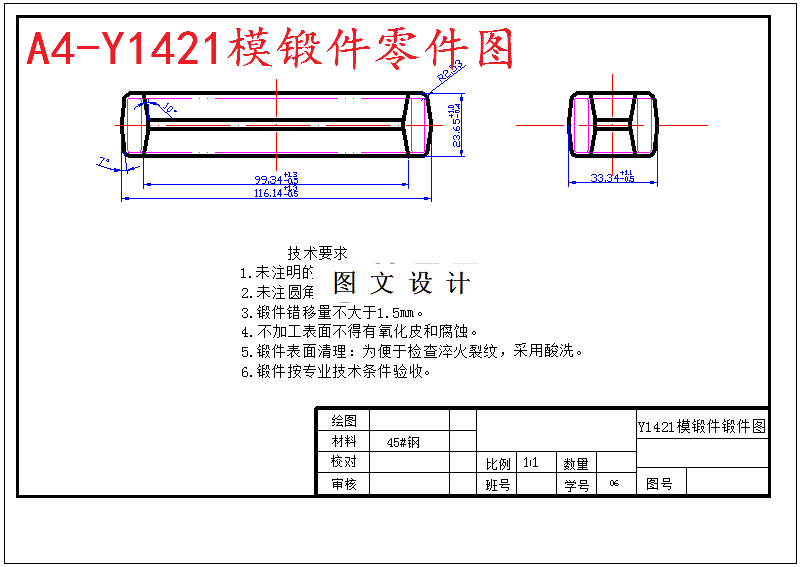 零件为环形件,环形件是工业生产中常用零件之一。该锻件为精锻件。此环形件是风电、石油、工程机械上一个重要的零件。确定的为锤锻。具体的来说,下料——终锻——机加工。环形类零件材料常用45钢,精度较高的可选用40Cr、轴承钢GCr15、弹簧钢65Mn,也可选用球墨铸铁;对高速、重载,选用20Mn2B、20Cr等低碳合金钢或38CrMoAl氮化钢点[10-11]:。 45钢是环形类零件的常用材料,它价格便宜经过调质(或正火)后,可得到较好的切削性能,而且能获得较高的强度和韧性等综合机械性能,淬火后表面硬度可达45~52HRC。轴承钢GCr15和弹簧钢65Mn,经调质和表面高频淬火后,表面硬度可达50~58HRC,并具有较高的耐疲劳性能和较好的耐磨性能,可制造较高精度的环形件。 因其属于一般环形类,故选45热轧圆钢,需调质可满足其要求。