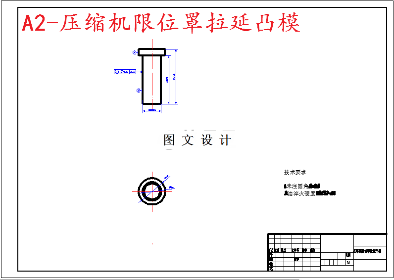 此零件为带凸缘圆筒形,内有孔,零件壁厚为0.5mm零件形状简单、结构对称,易于成型。工件的尺寸精度要求为IT12级,且部分尺寸公差已经给出。根据对零件图的分析,其冲压基本工序可初步定为:落料——拉延——冲孔。 由于大批量生产,所以冲压加工过程要求提高生产效率,降低生产成本来满足生产要求,可要求工序数目尽量减小。以本设计将落料、拉延、冲孔由三套连续模具完成。