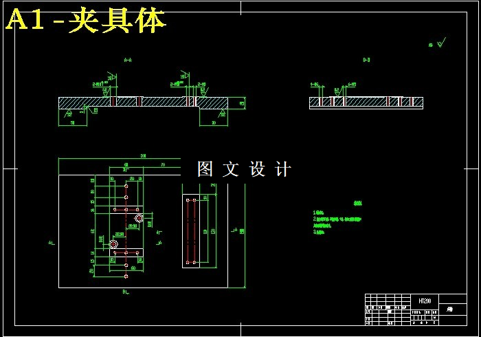本次设计内容涉及了机械制造工艺及机床夹具设计、金属切削机床、公差配合与测量等多方面的知识。 壳体及其钻右4-Φ15孔的夹具设计是包括零件加工的工艺设计、工序设计以及专用夹具的设计三部分。在工艺设计中要首先对零件进行分析,了解零件的工艺再设计出毛坯的结构,并选择好零件的加工基准,设计出零件的工艺路线;接着对零件各个工步的工序进行尺寸计算,关键是决定出各个工序的工艺装备及切削用量;然后进行专用夹具的设计,选择设计出夹具的各个组成部件,如定位元件、夹紧元件、引导元件、夹具体与机床的连接部件以及其它部件;计算出夹具定位时产生的定位误差,分析夹具结构的合理性与不足之处,并在以后设计中注意改进。