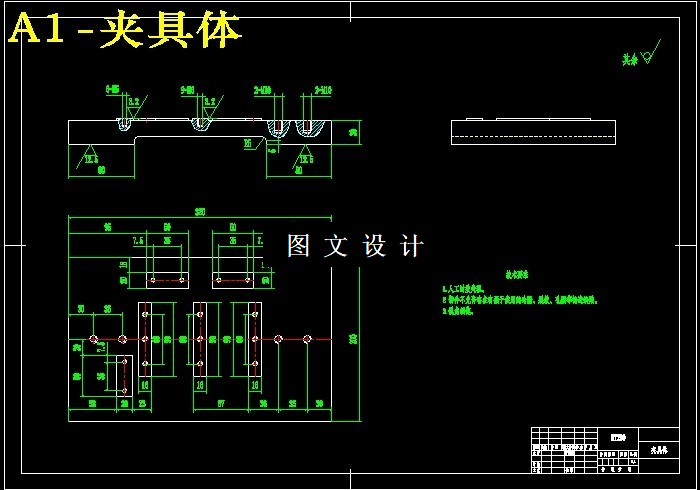本次设计内容涉及了机械制造工艺及机床夹具设计、金属切削机床、公差配合与测量等多方面的知识。 右箱体的加工工艺规程和钻、攻8-M5螺纹与钻6-Φ6孔的工装夹具设计是包括零件加工的工艺设计、工序设计以及专用夹具的设计三部分。在工艺设计中要首先对零件进行分析,了解零件的工艺再设计出毛坯的结构,并选择好零件的加工基准,设计出零件的工艺路线;接着对零件各个工步的工序进行尺寸计算,关键是决定出各个工序的工艺装备及切削用量;然后进行专用夹具的设计,选择设计出夹具的各个组成部件,如定位元件、夹紧元件、引导元件、夹具体与机床的连接部件以及其它部件;计算出夹具定位时产生的定位误差,分析夹具结构的合理性与不足之处,并在以后设计中注意改进。