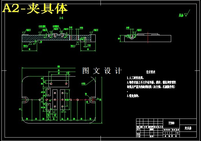 本次设计内容涉及了机械制造工艺及机床夹具设计、金属切削机床、公差配合与测量等多方面的知识。 阀体的加工工艺规程和铣阀体顶面的工装夹具设计是包括零件加工的工艺设计、工序设计以及专用夹具的设计三部分。在工艺设计中要首先对零件进行分析,了解零件的工艺再设计出毛坯的结构,并选择好零件的加工基准,设计出零件的工艺路线;接着对零件各个工步的工序进行尺寸计算,关键是决定出各个工序的工艺装备及切削用量;然后进行专用夹具的设计,选择设计出夹具的各个组成部件,如定位元件、夹紧元件、引导元件、夹具体与机床的连接部件以及其它部件;计算出夹具定位时产生的定位误差,分析夹具结构的合理性与不足之处,并在以后设计中注意改进。 关键词:切削用量 夹紧 定位 误差。