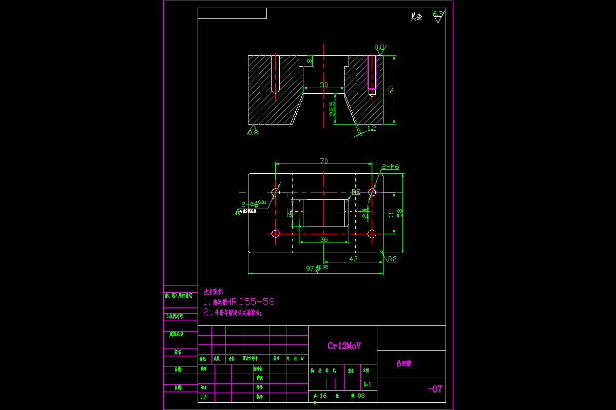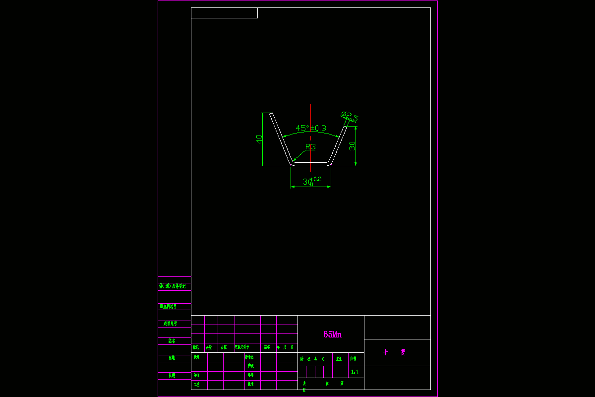 本设计主要对卡簧冲压模具进行设计。结合公司实际生产要求和产品的特点,在厂原有的设计上,对模具进行了改进设计。本设计对卡簧加工工艺进行了分析,得出了最佳加工方案,在充分保证零件质量与精度的前提下,选择高生产率的加工工艺,降低生产成本,从而有效地节约了材料。本设计中使用计算机软件进行了辅助设计,在保证高精度的同时简化了传统的繁琐计算过程,使设计更为便捷。 该卡簧从坯料到完全成形,以前是使用两套模具:剪料,弯曲,所设计的两套模具较为典型,也具有一定的代表性。本设计的重点与难点是多道工序的结合以及对凸、凹模刃口尺寸的计算,因为它将直接影响零件的质量。