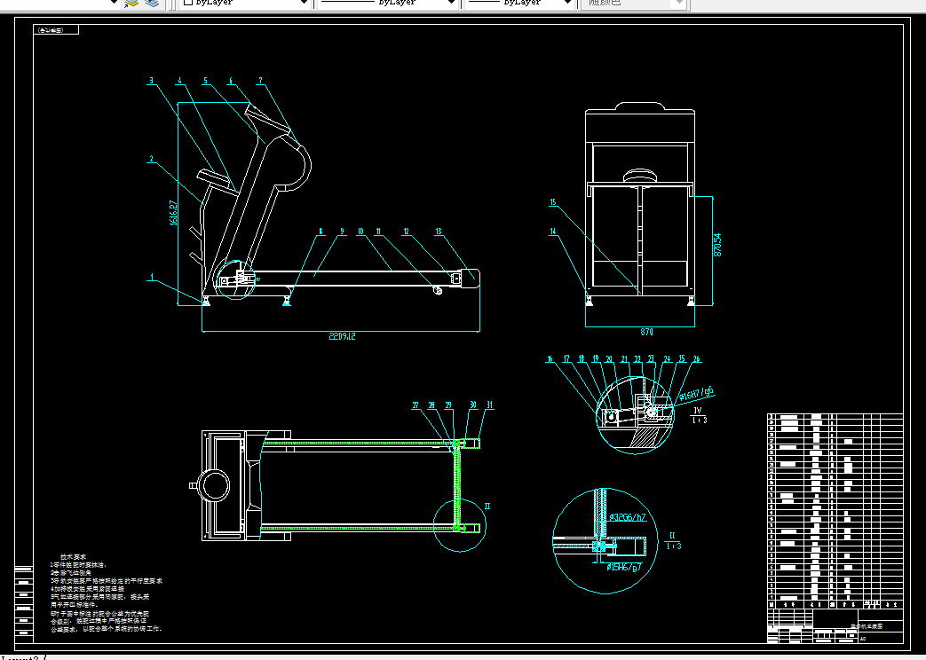 电动跑步机和机械结构都是紧密相关的,本次毕业设计是研究一款电动跑步机。利用我们大学四年所学的机械专业知识查阅各种相关资料和文献,了解和熟悉其工作原理,首先根据设计任务书要求及参数对电动跑步机提出总体的方案设计,然后通过各种三维二维机械制图软件对电动跑步机进行结构设计,并绘制相关图纸,最后对电动跑步机的零部件进行受力分析及强度校核。