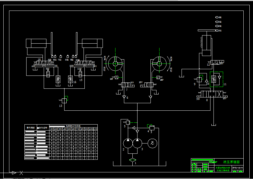 本次毕业设计的题目是“液压半自动钻铣组合机床”。本组合机床要求能实现钻中心孔和铣两端面,能进行手动和自动控制,铣削头能作10mm的微调。本人的设计的主要内容是:进行了机床总体布局设计;对机床的进给和传动部分进行了设计;机床料架的夹紧方案的选取和设计;对机床液压系统进行了设计,绘制了液压原理图;最后根据液压图和系统的工作循环,设计了电气控制系统,并编制了PLC 程序图。