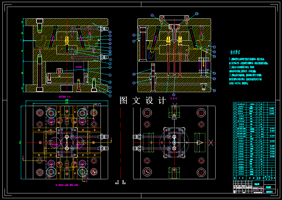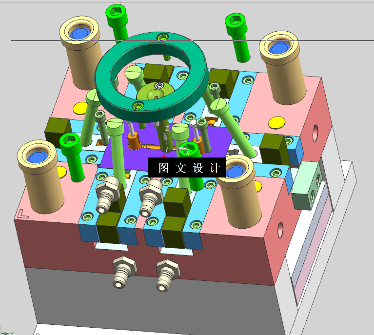 该产品设计为大批量生产,故设计的模具要有较高的注塑效率,浇注系统要能够自动脱模,此外为保证塑件表面质量采用侧浇口,因此选用单分型面注射模,侧浇口自动脱模结构。模具的型腔采用一模两腔平衡布置,浇注系统采用侧浇口成形,推出形式为十六推杆推出机构完成塑件的推出。