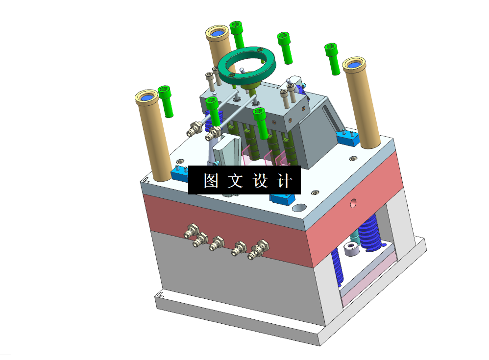本次设计的产品为扫把手柄,在针对产品进行工艺性分析后,确定模具分 型面、 型腔数目、 浇口形式、 位置大小.采用一模四腔,侧进胶 ,哈弗块侧抽芯,推板推出的方案。