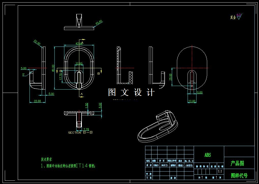 本次设计的产品为挂钩,具有重量轻,强度高,耐腐蚀,易清洁等 特点,为大批量生产产品。本次设计在针对产品进行工艺性分析后,确定模具分 型面、 型腔数目、 浇口形式、 位置大小; 其中最重要的是确定型芯和型腔的结构, 以及它们的定位和紧固方式。此外还进行了脱模机构的设计,合模导向机构的设 计,冷却系统的设计等。