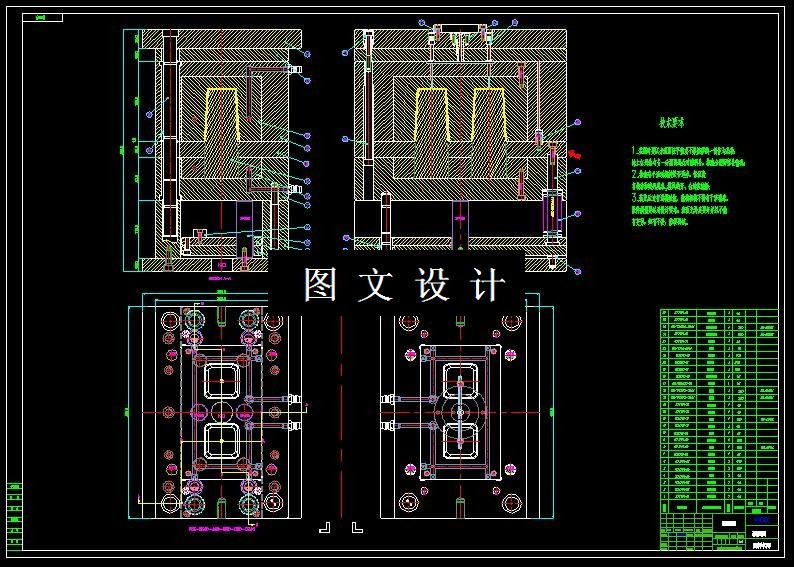 本次设计的产品为塑料牙缸塑件,具有重量轻,强度高,耐腐蚀,易清洁等 特点,为大批量生产产品。本次设计在针对产品进行工艺性分析后,确定模具分 型面、 型腔数目、 浇口形式、 位置大小; 其中最重要的是确定型芯和型腔的结构, 以及它们的定位和紧固方式。此外还进行了脱模机构的设计,合模导向机构的设 计,冷却系统的设计.