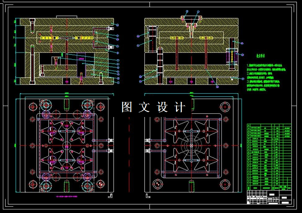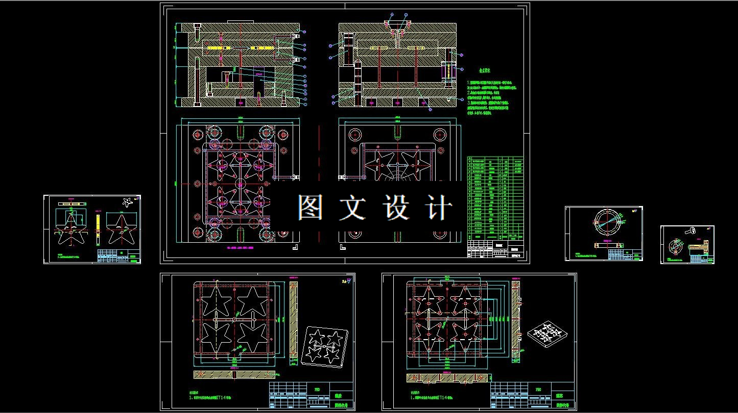 玩具海星塑件采用的材料是改性聚苯乙烯,是一种热塑性材料,符合注射模的要求.它的精度要求不高,一般4级就能满足要求.根据任务书要求,该制件属于打批量生产,所以采用了一模四腔设计,凹型芯开设在定模板和中间板之间.采用普通浇注系统侧浇口的形式.根据估算制件和浇注系统凝料的重量.选用HTF200J/TJ型注射机,