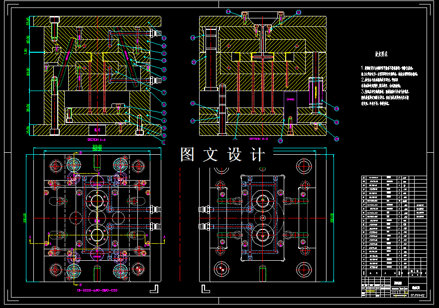 该次设计的难点是需要进行滑块侧向分型分析,而且是一模2腔的设计,分析确定结构。最后要完成完整的一套模具设计总图,包括成型部分,合模导向机构,推出机构,侧向分型抽芯机构等。设计过程包括了对成型零件的各种计算,抽芯机构的校核计算等。