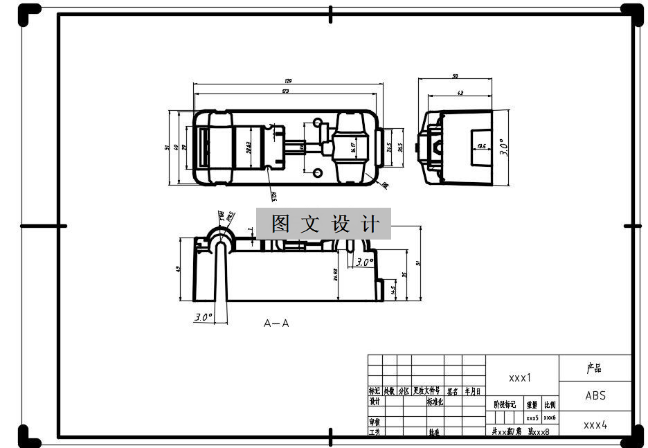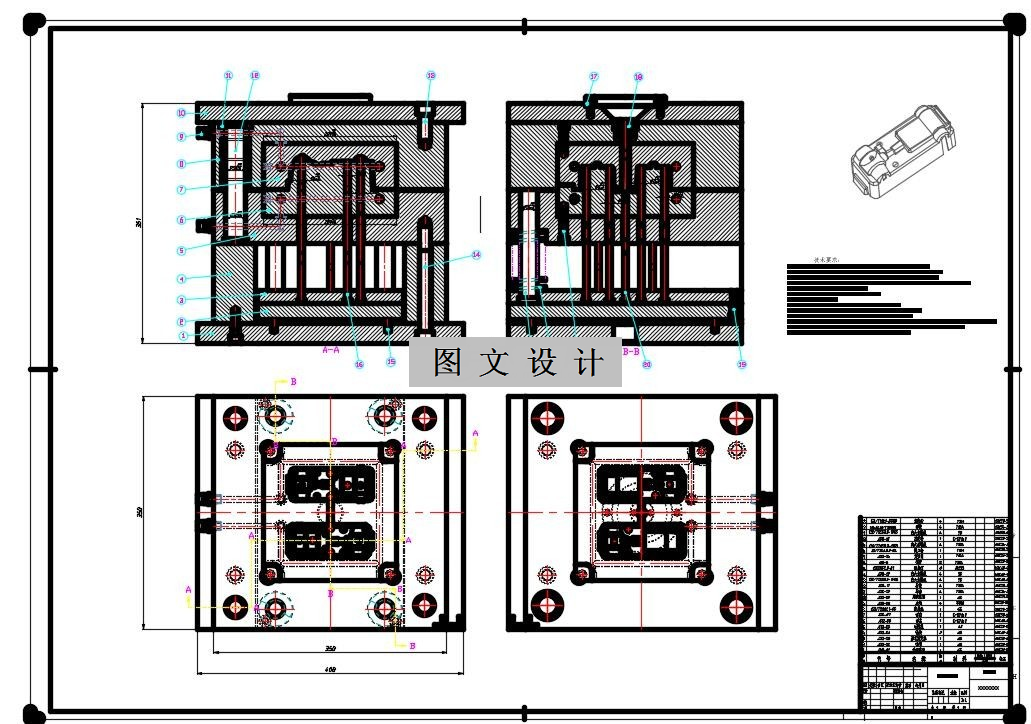 本设计分析了塑件的结构,提出了模具设计的关键点,设计了模具的整体结构。根据塑件分型面的位置,设计了推件板和斜顶杆的推出结构,零件采用了双分型面的点浇口,提高了零件的外面质量。通过对塑件进行工艺的分析及其结构分析,从产品结构工艺性,具体模具结构出发,对模具的浇注系统、模具成型部分的结构、顶出系统、注射机的选择及有关参数的校核都有详细的设计。该模具一模2腔,采用顶针顶出结构。经过生产验证,该模具结构合理,动作可靠。