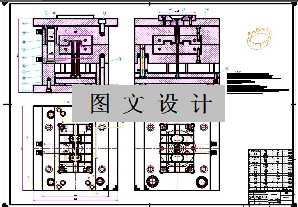 在本设计中进行了塑件工艺性分析、总体方案的设计、注塑机的选择、浇注系统的设计、成型零件的设计、脱模机构的设计、导向和定位机构的设计、模架的选择、冷却系统的设计和计算等设计工作。在本次设计中,采用一模两腔,侧交口。推杆推出的方式,进行综合设计