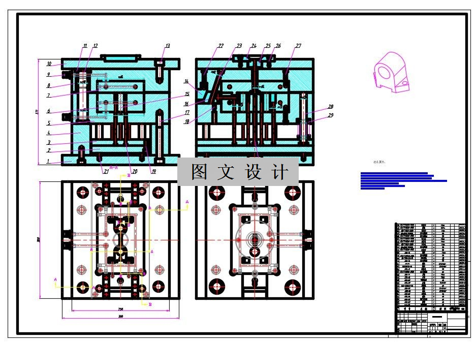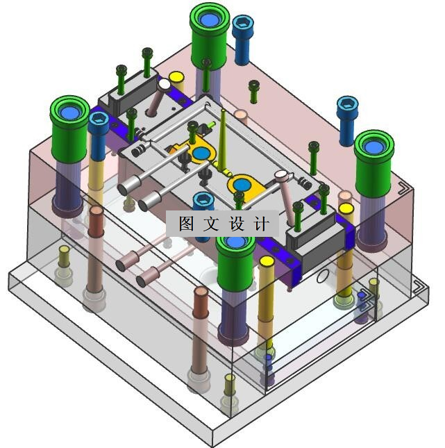 轴承底座注塑模具设计是轴承的座板,塑件比较简单,分型面放置在塑件的中间,模具采用一模2腔,进行设计,进料方式采用侧浇口进料,型芯采用组合式的型芯。