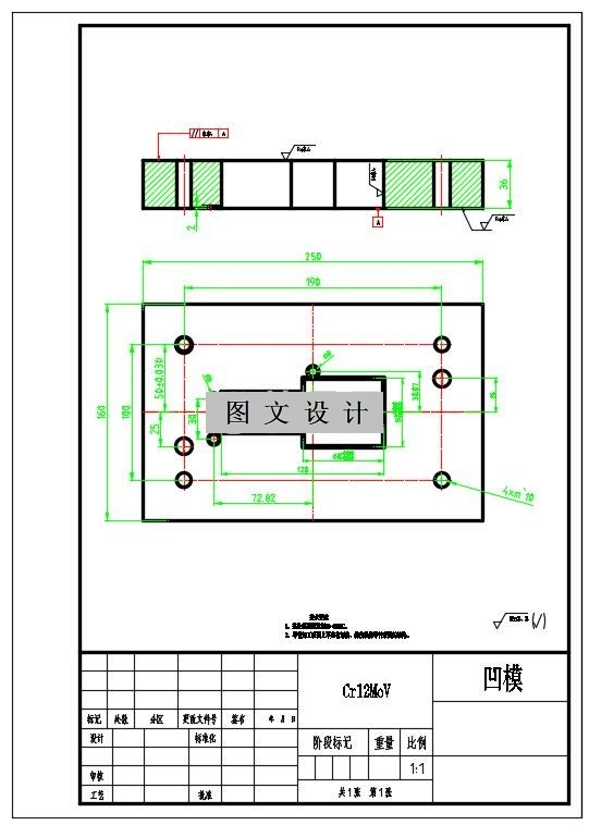 长条双孔垫片外形全部又线条组成,内部两个圆孔,根据设计方案,采用的是倒装复合模,推出方式采用推件块推件,打杆打件的方式,一起有cad装配图,全套零件图