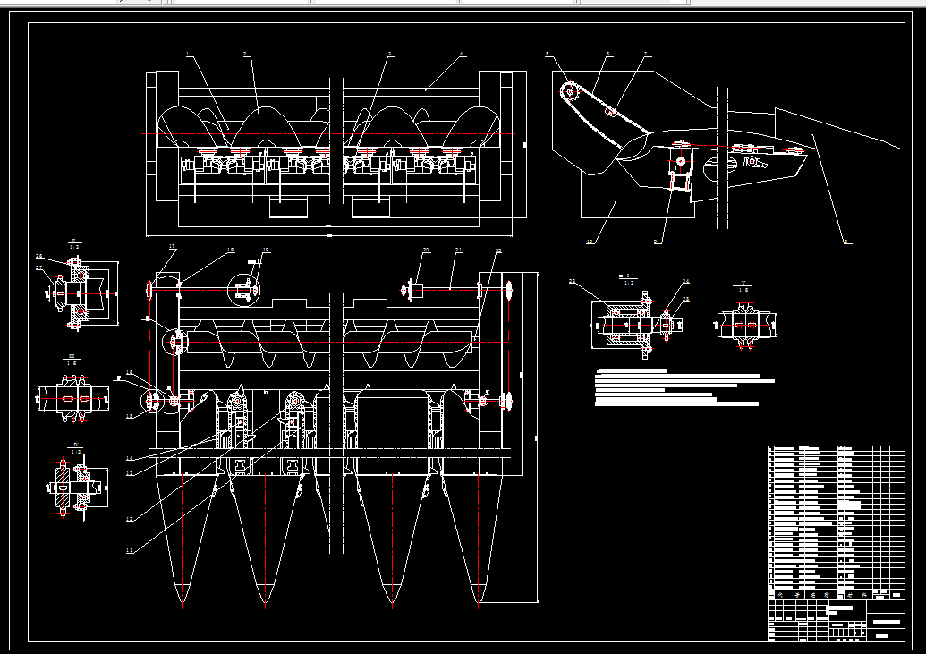 本设计主要根据玉米收获时的基本要求,进行设计割台的各个机构,使各机构协调工作。同时介绍传动机构的选择和各个机构的设计过程,并对所选择的分禾器机构、链传动、及其他重要的零部件进行详细的设计计算及强度校核。