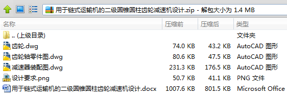 B768-用于链式运输机的二级圆锥圆柱齿轮减速机设计F=7500,V=0.8,D=532 下载积分:50 资料编号: B768