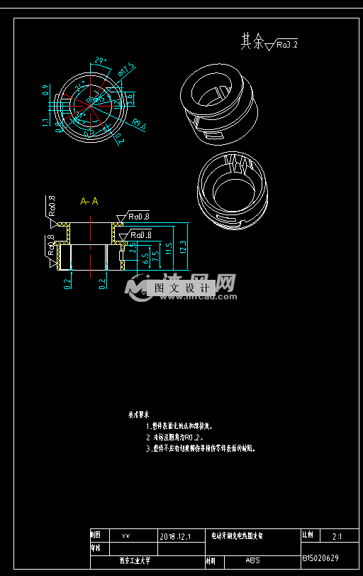 本次电动牙刷充电线圈支架注射模设计运用自己所掌握的三维软件和二维绘图软件对电动牙刷充电线圈支架及电动牙刷充电线圈支架注射模模具进行绘制。从电动牙刷充电线圈支架产品的成型结构特征开始、到对分型面分析及位置的选择、模具浇注系统设计、型芯型腔结构设计和尺寸计算,脱模推出机构、冷却系统、与此同时合理地选用了注塑机型号,而且对注塑机压力,锁模力及顶出力等工艺参数进行详细校核,进而保证了设计的合理性及正规性。如此设计出的注射模结构才能确保模具工作运行可靠。