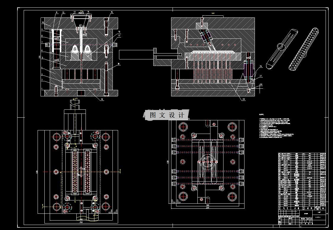 本次的设计是清洁刷柄塑料模具设计,依据产品的数量和塑料的工艺性能确定了以单分型面注塑模的方式进行设计。模具的型腔采用一模两腔,浇注系统采用侧浇口成形,推出形式为推杆推出机构完成清洁刷柄的推出。由于清洁刷柄的工艺性能要求注塑模中有冷却系统,因此在模具设计中也进行了设计。