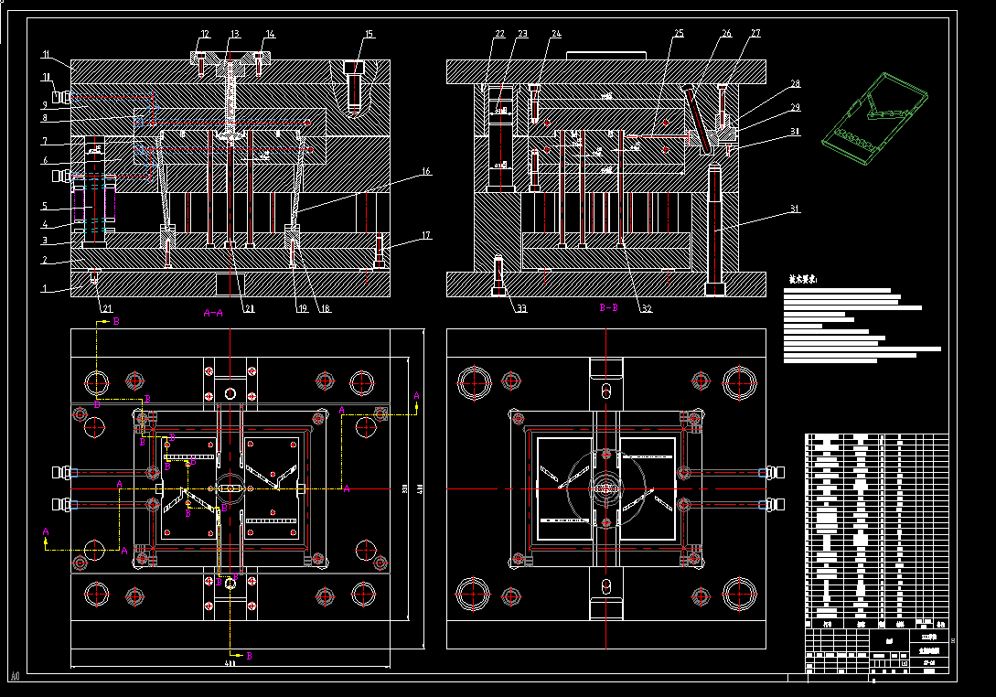 本设计主要是针对螺丝刀套装盒底的进行一整套注射模理论设计。虽然不能投入生产,但是里面的各个结构及结构都我们需要认真考虑的。本次模具设计首先分析了螺丝刀套装盒底的结构,型腔数目上采用了一模两腔结构,然后着完成了注塑模具浇注系统的设计、浇口采用了侧浇口类型,为成型内部倒扣和外部侧孔结构设计了侧向抽芯机构、最后完成了模具脱模机构的设计,选择了合适的注塑机型号,并对注塑机相关参数进行了校核,确保整个模具设计过程的标准性与合理性。由于采用是侧浇口,所以在选择模架的时候,选用了两板模大水口模架,在本次设计过程中,运用大学时期所掌握的PROE和CAD计算机软件辅助设计,高效的完成了模具装配图和模具零件图的绘制,顺利的完成本次毕业设计任务。