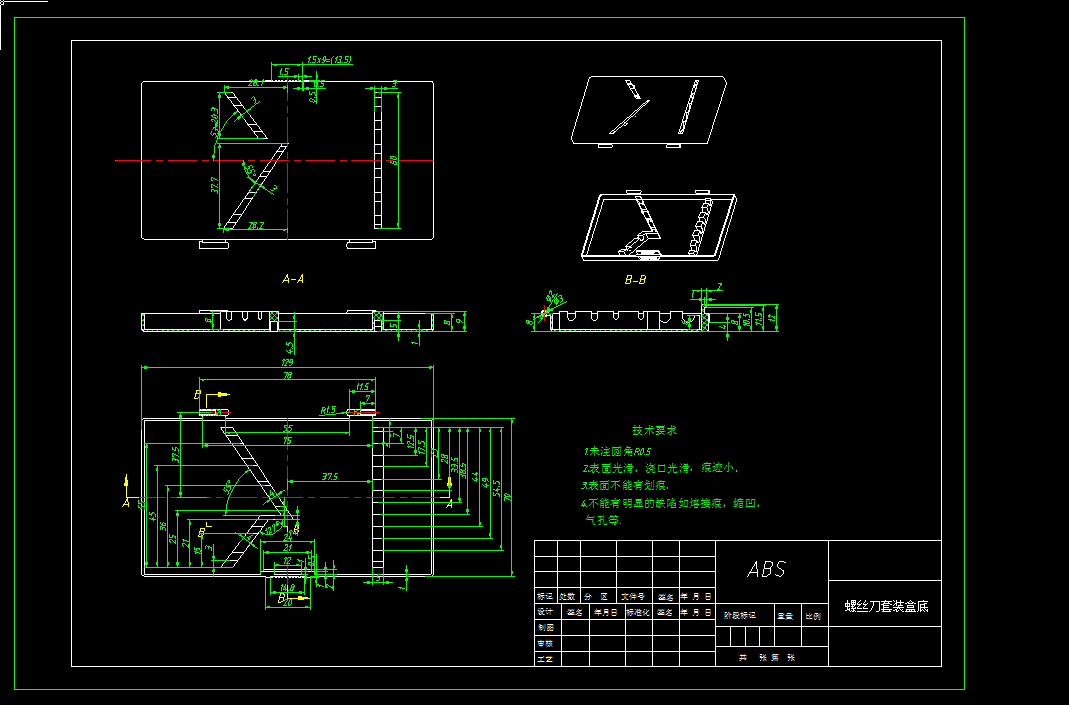 关键词 :螺丝刀套装盒底;浇注系统、侧向抽芯机构、脱模机构