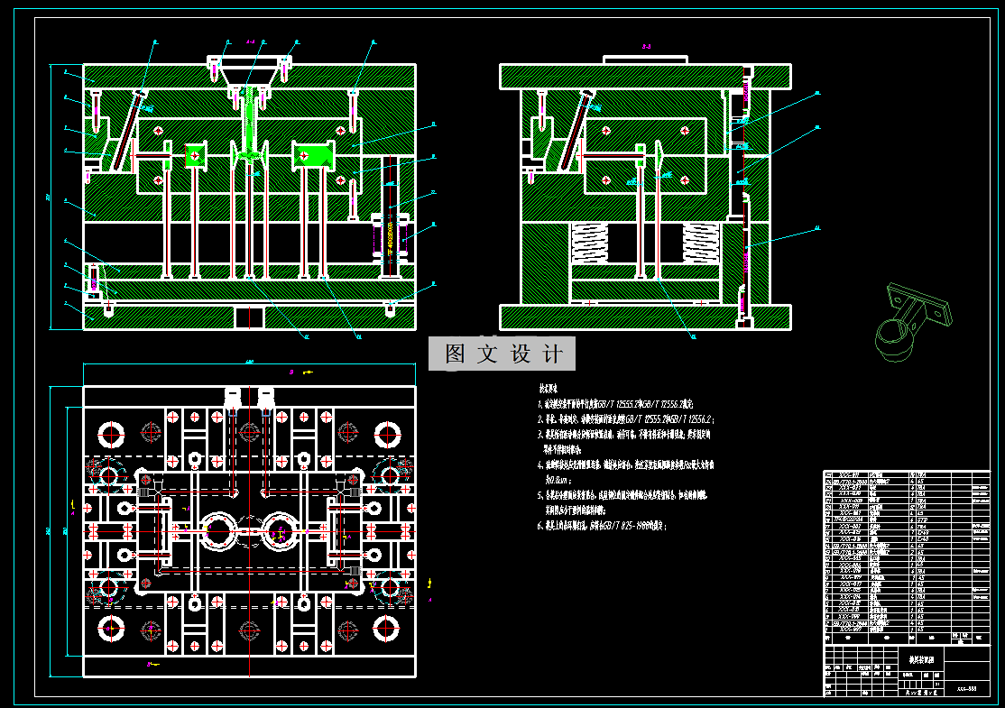 根据塑料制品的要求,了解公共汽车手扶钢管支架的用途,分析公共汽车手扶钢管支架塑件的工艺性、尺寸精度等技术要求,选择公共汽车手扶钢管支架塑件制件尺寸。确定模具结构并选择注塑机,初步确定工艺条件、浇注系统和冷却系统,模具为一模两腔,侧浇口,采用斜导柱抽芯机构成型塑件上多处侧孔结构,本资料含有模具装配图、模具三维、多张模具零件图