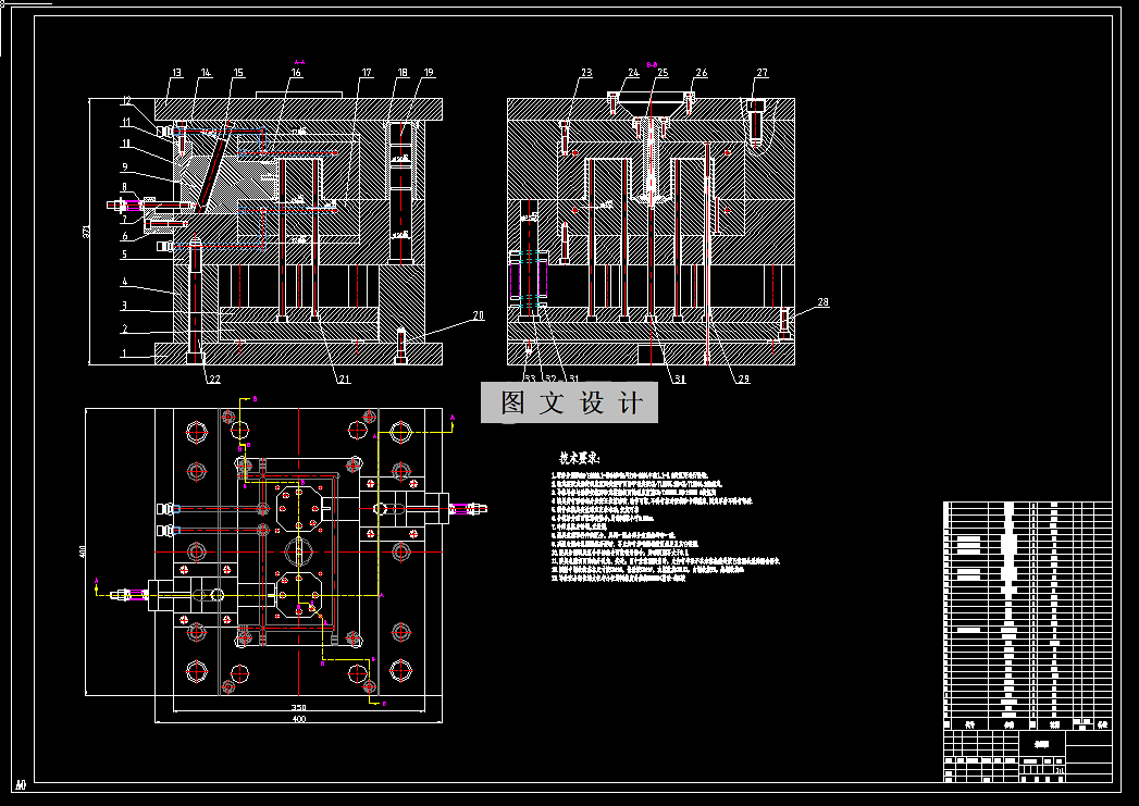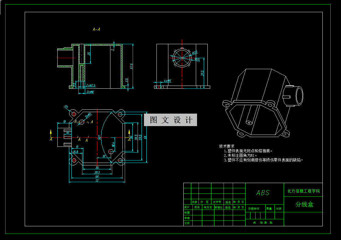 参考资料分线盒注塑模具设计主题。模具为一模两腔,侧浇口,塑件上侧孔结构采用斜导柱抽芯机构成型,推杆推出,本资料含有模具装配图、模具三维、多张模具零件图,模具设计说明书等等