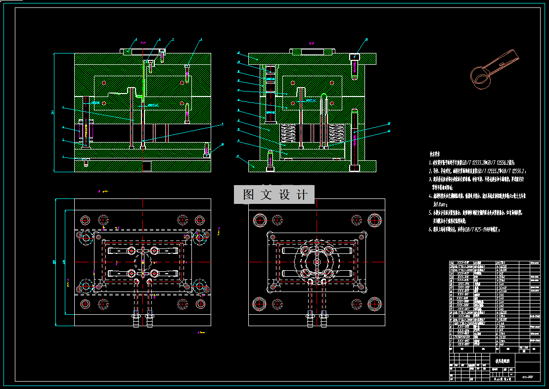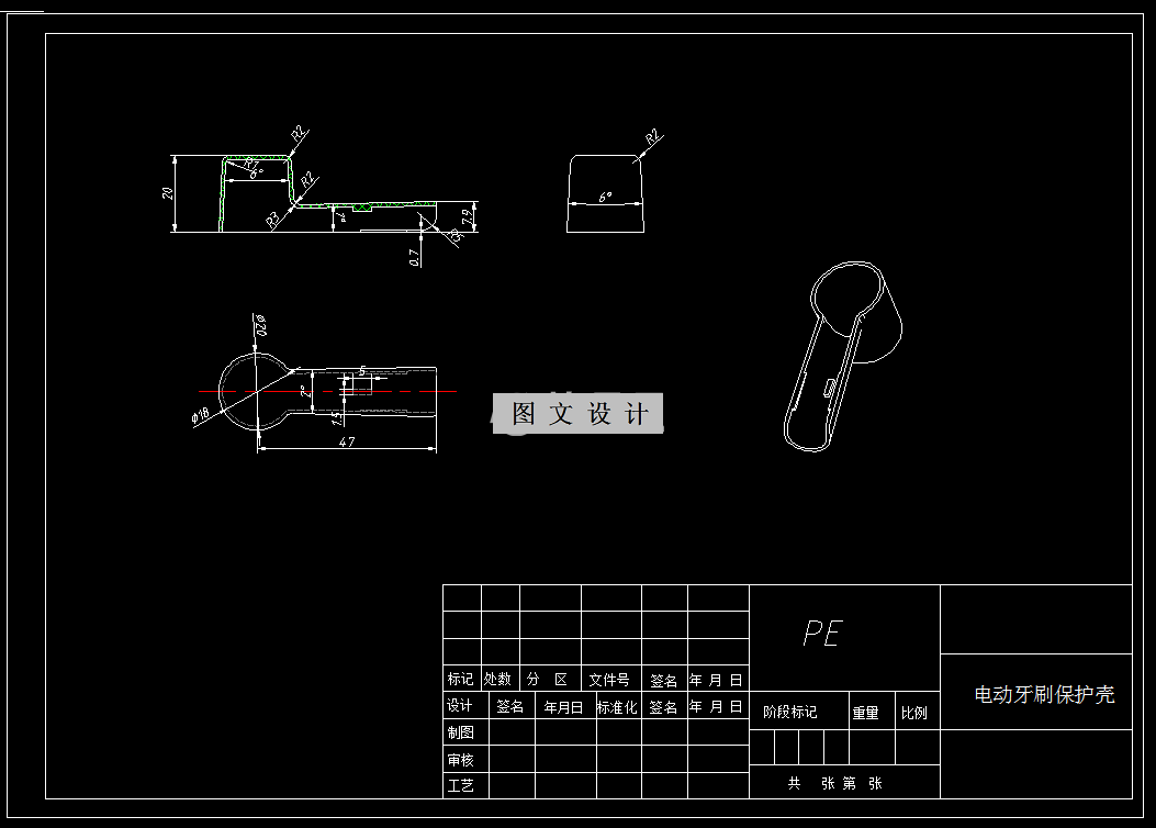 参考资料电动牙刷保护壳注塑模具设计主题。模具为一模四腔,侧浇口,推杆推出,本资料含有模具装配图、模具三维、多张模具零件图等等